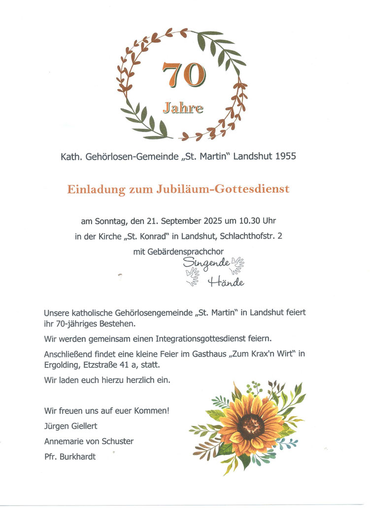 Nachstehend eine Fotogalerie von der 70.Jahrfeier der Kath. Gehörlosen Gemeinde St. Martin Landshut